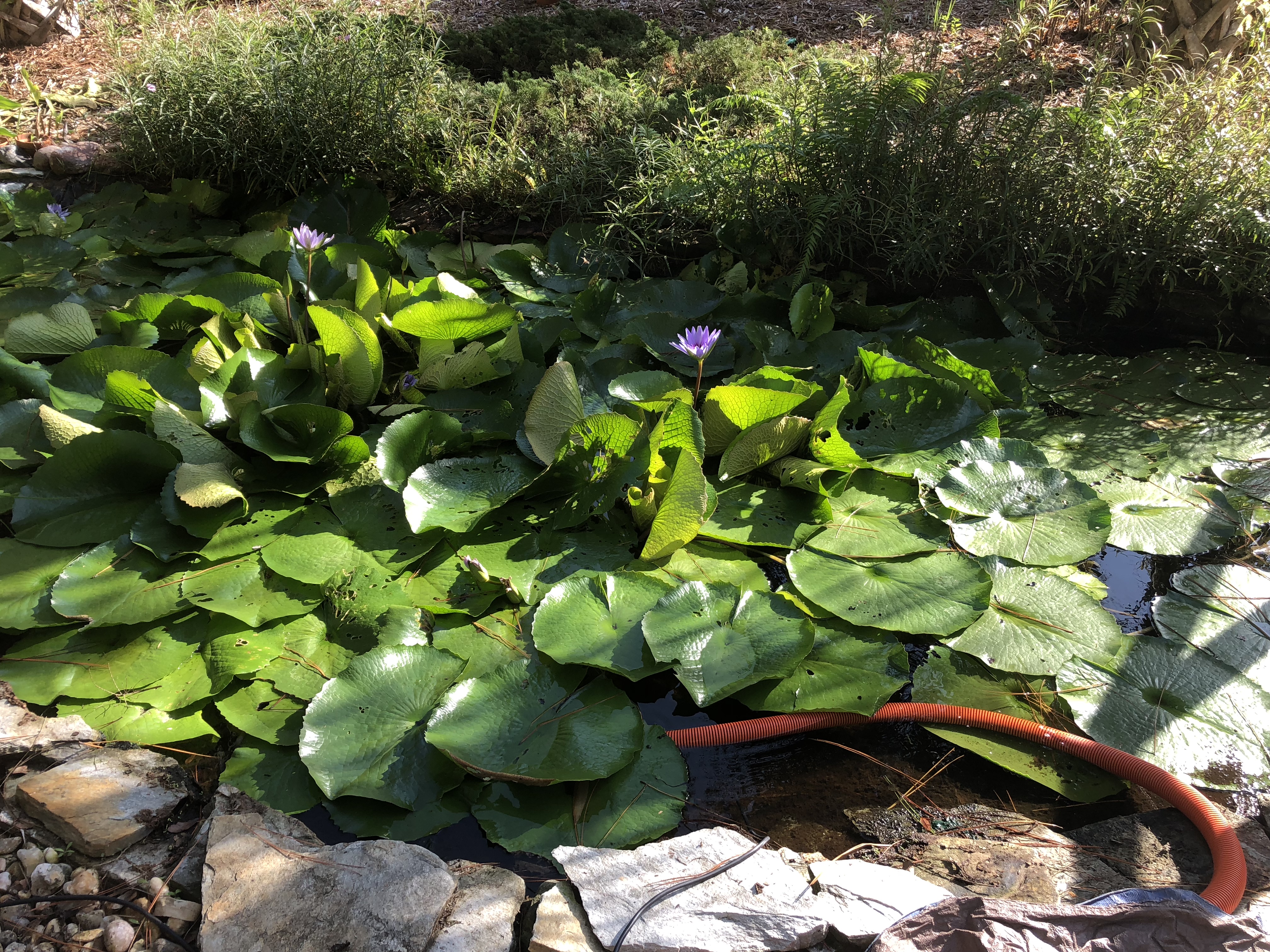 Monthly maintenance includes: cleaning the bio-media or bog; testing and treating the water; removing dead and excess vegetation; fertilizing water lilies and marginals as needed.